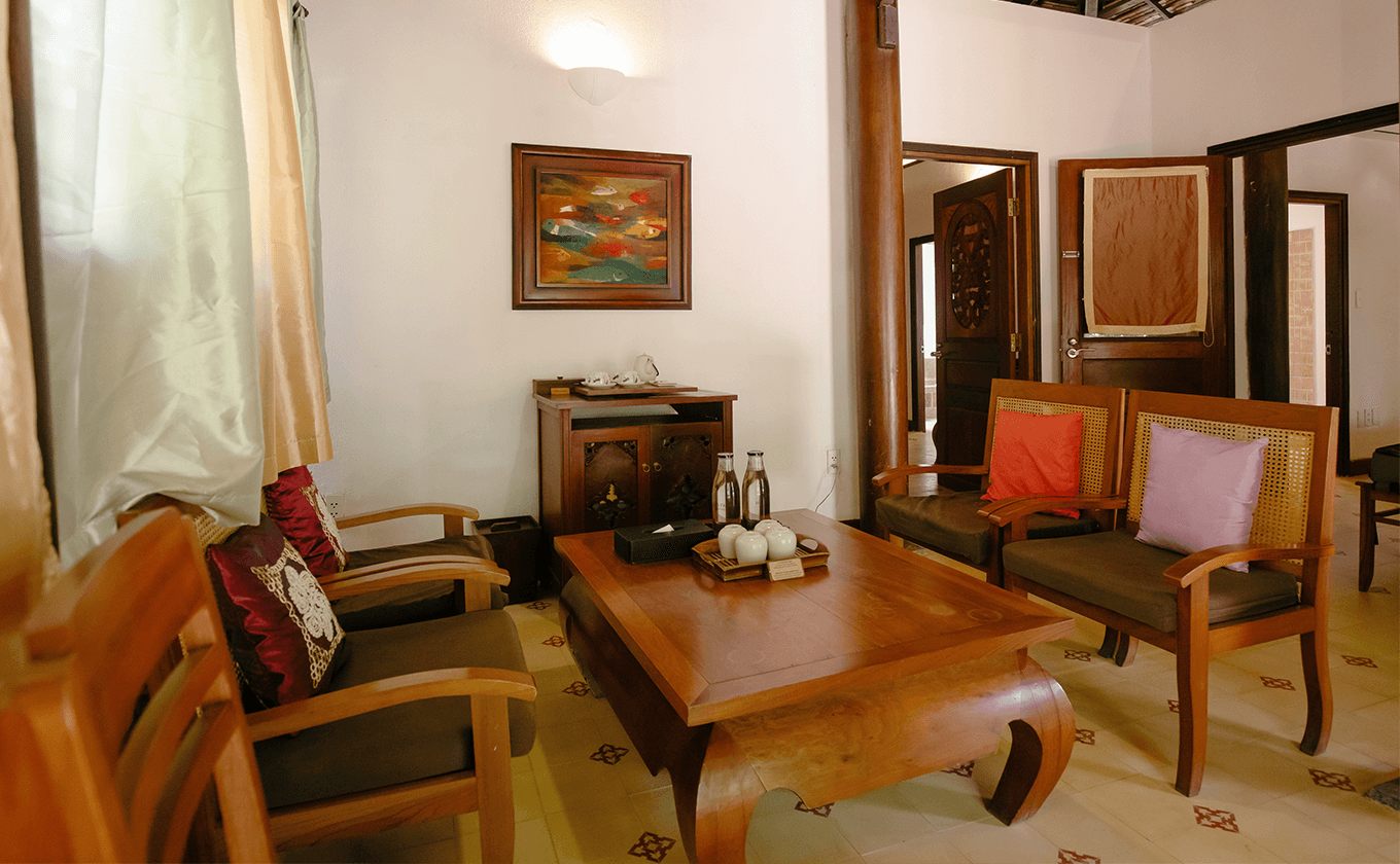 Maximum 2 adults and 2 children, Vietnamese Ancient House style Bungalow, Two separate bedrooms with a connecting living area, ideal for families with young children