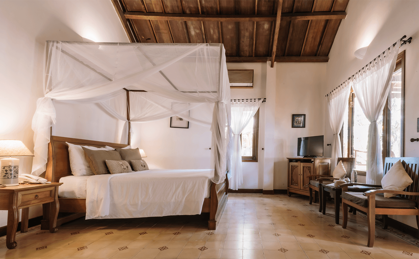 The Premier Ocean Room offers a rustic bungalow-style retreat with open ocean views, just steps from the beach, featuring an open-air bathroom for a truly immersive nature-inspired stay.